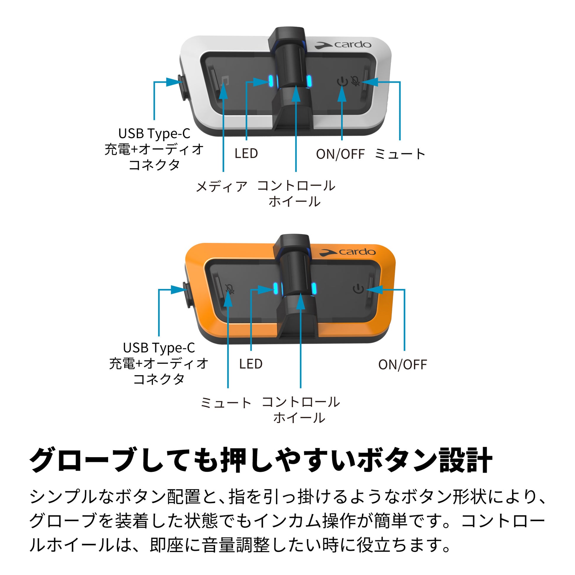 グローブしても押しやすいボタン設計