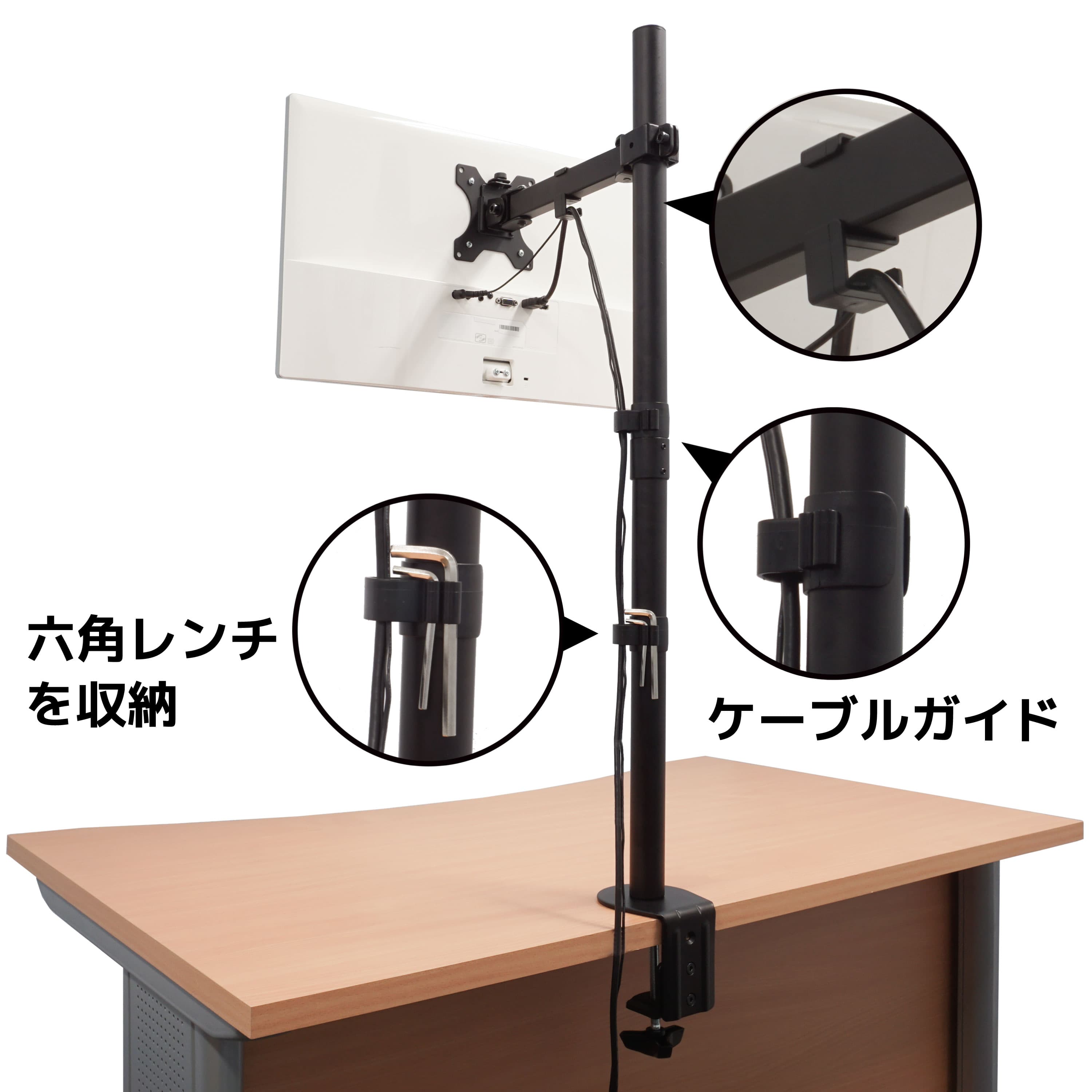 約88cmのロングポールでモニターを高い位置に設置