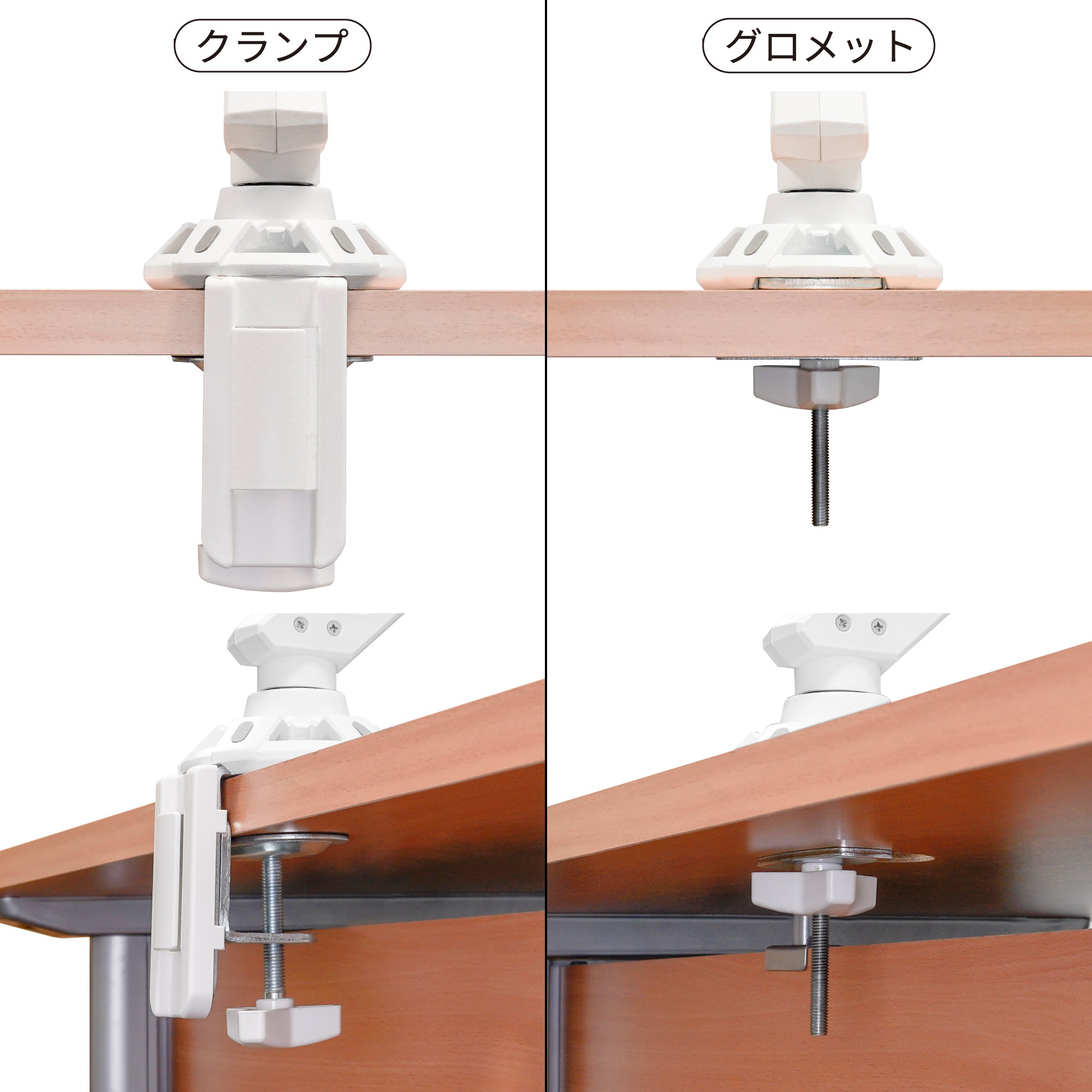 クランプ・グロメットの2つの固定方式に対応