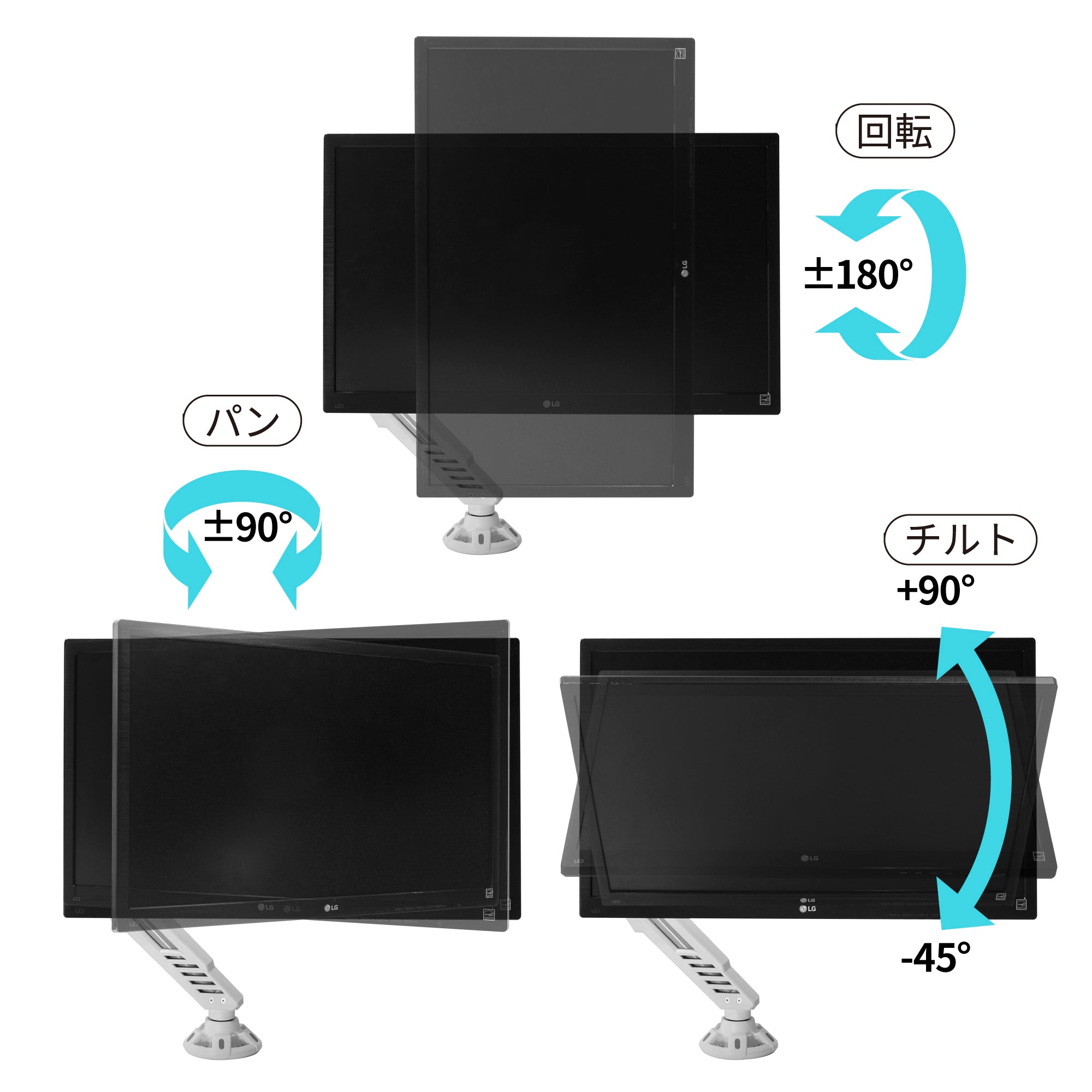 モニターの回転・角度の調節が可能